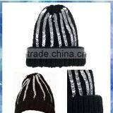 Hot Sale Foil Stripe Knit Beanie/women Fashion Hat/thick Knit Beanie