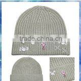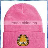 100% Acrylic Knit Cheap Hat/long Cuff Beanie/rose Beanie