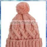 100% Acrylic Cable Knit Girls' Hat/pom Knitted Beanie Hat/girls Fashion Knitting Beanie Hat