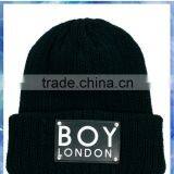 Black Ribbed Knit Patch Beanie Hat,custom Beanie Hat,knitting Machine Hat Pattern