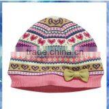 Cotton/acrylic Fairisle Bowknot Knitted Hat Girls