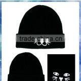 100% Acrylic Cat Face Embroidered Funny Knitted Hat