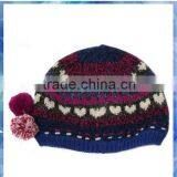 Acrylic Fashion Knitted Hat/heart Pattern Hat/knit Pompom Hat