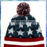 Star Pattern Custom Knitted Pom Beanie Hat/mens Beanie/mens Hats for Sale