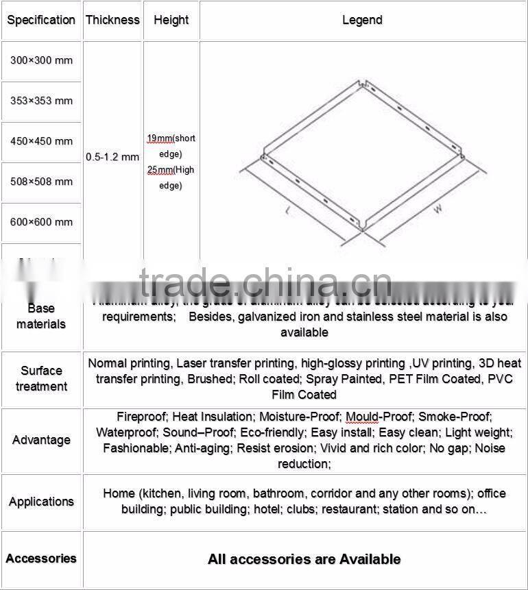 Quality sssured decorative aluminum integrated suspended ceiling panel/board/plate