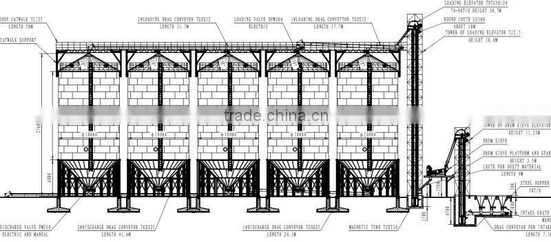 1>.Silo: the silo wall sheets are corrugated that is made of high quality galvanizing board; the sheets are bolted together by common or high strengthen bolts. The thickness of silo wall is designed according to the strength theory, which makes the whole wall can afford even swelling tension. At the same time, the external vertical stiffeners can afford the vertical friction. It is 1.44m between every two stiffeners, and there are spherical waterproof washers in the bolts' hole and waterproof mastic bars between every two pieces of silo sheet. The handle equipments can make it more convenient to maintenance and unloading, such as silo doors, interior and exterior ladder and protecting net.