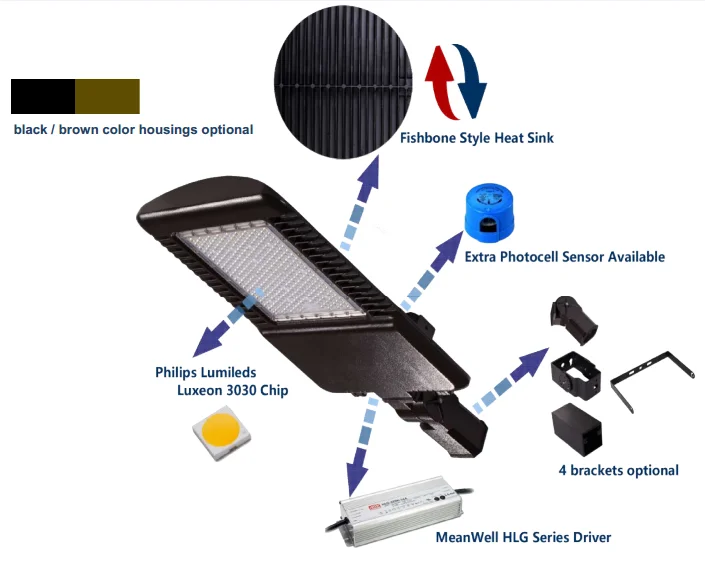 5 Brackets Optional Led Shoebox Light Lumileds UL DLC Listed