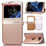 Plain Color Window View Funtion PU Leather Flip Wallet Phone Case for Samsung Galaxy s7 Edge
