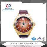 Fashion Black Dial Leather Strap Gold Case Sport Watch