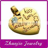 Personalized Custom Design Fashion 316L Stainless Steel Love Heart Pendants With Shiny Stone Finish In Gold Plating