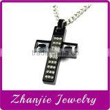 Best Sell Religious Jewelry Jesus Christ Charm 316L Stainless Steel Casting Gothic Cross Pendant With Black Stone Made In China