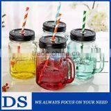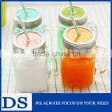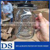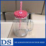 High Quality Glass Mason Jar With Handle and Metal Lid and Straw
