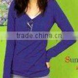 Ladies 95% Cotton 5% Spandex Long Sleeve v Neck T-shirt