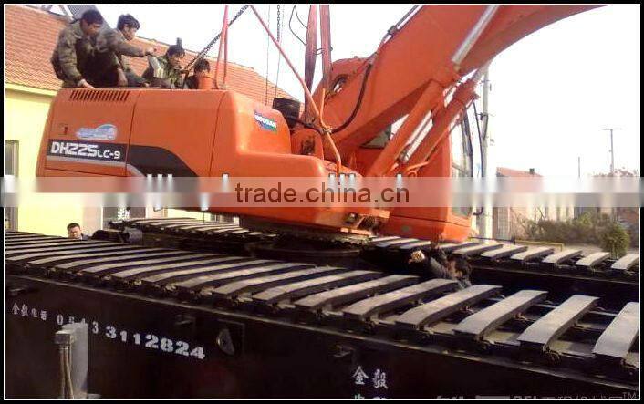 The pontoon is made of ship-making material A36 to increase strength and corrosion durability and to reduce its own weight. A large curvature design at both ends ensures the pontoon’s loading capacity and lessens its own weight, and also reduces the friction on contact with the ground. The pontoon can be adjusted to different loading designs based on the excavator models it is used with.