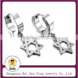 China Manufacturer Wholesale Religious Christians Stainless Steel Hollow Out Star Of David Stud Pendnat Charm Hoop Earrings