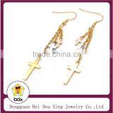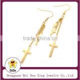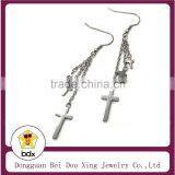 Handmade Stylish Easter Keepsake Gift 316L Stainless Steel Three Color Dance Cross Charm Religious Catholic Style Hook Earrings
