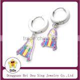 New Design Gold Stainless Steel Religious Colorful Enamel Carton Style Angel Mary Mother Charm Hook Earrings Made In China