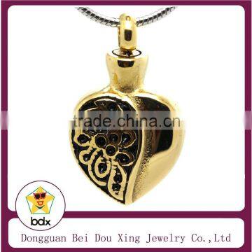 | Name | IP Gold Plated Stainless Steel Metal Engraved Heart Shape Flower Urn Cremation Pet Pendant Ash Holder Mini Keepsake Jewelry |