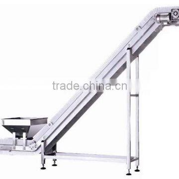 3). Incline elevator will lifting products onto the top of weighing machine for feeding