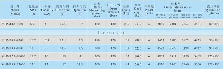 The grab has its own hydraulic system, all key elements are imported well-known brands to ensure high performance of grab. It is simple in structure, easy operation.