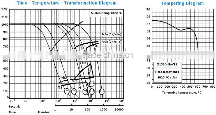 SKD 11 is high carbon and high chromium, ledeburitic 12 % Cr alloyed cold work tool steel. Properties: excellent abrasion resistance due to a large volume of carbides in the microstructure, high cutting ability with edge holding properties, high compression strength, excellent deep harden ability and toughness properties, dimensional stability during heat treatment, high res-istance to softening at elevated temperatures. Suitable for nitriding and electrical discharge machining.