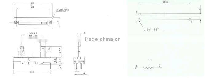 3 pin potentiometer slide potentiometer 20mm travel length