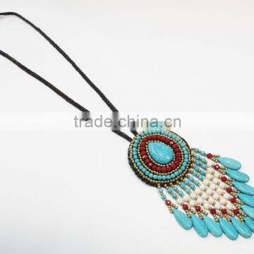 Home > Arts & Crafts > Fashion Accessories > Necklace > Blue Howlite Wax Cotton Thread With Mixed Natural Stone, Stone Necklace WT13
