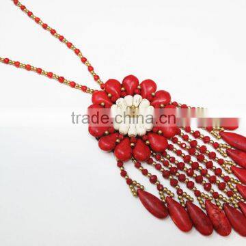 Red Crystal with Red Howlite Wax cotton thread with mixed natural stone, Stone necklace WT17