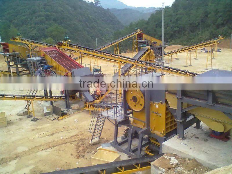 Jaw crusher is composed of primary crushing and screening station and secondary one, belt conveyor, etc. Every crushing station is an independent working unit, they can respectively assume their different responsibility, and the belt conveyer is responsible for material transmitting and piling up between each crushing station.