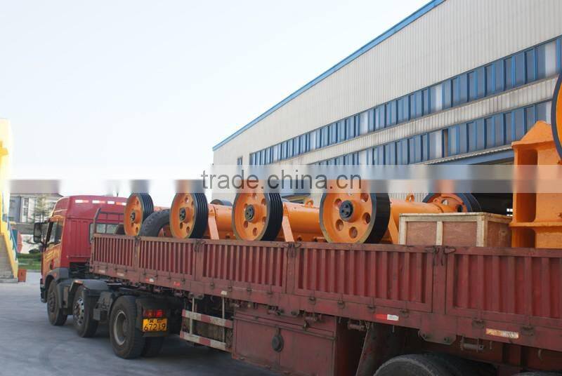 The motor transmits power through belt,drives the moving jaw to do periodic motion towards the fixed jaw by the eccentric shaft.The angle between toggle plate and moving jaw plate increases when moving jaw moves.So the moving jaw moves towards the fixed jaw.The stuff will be crushed in this process.The angle between toggle plate and moving jaw decreases when moving jaw moves down,the moving jaw moves leaves fixed jaw by pulling rod and spring,the final crushed stuff will be discharged from the outlet.