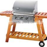 3 Stainless Steel Burners Gas BBQ Grill With Wooden Table CE Approved