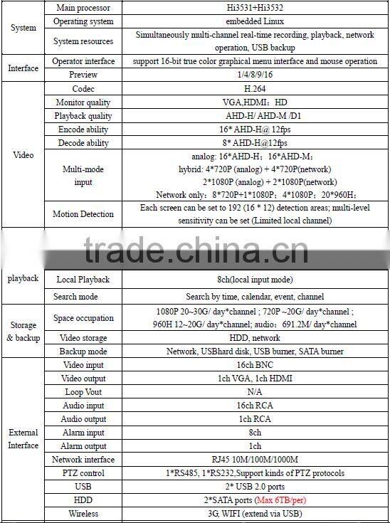 1080p Real Time AHD DVR Support 16ch 1080p Camera