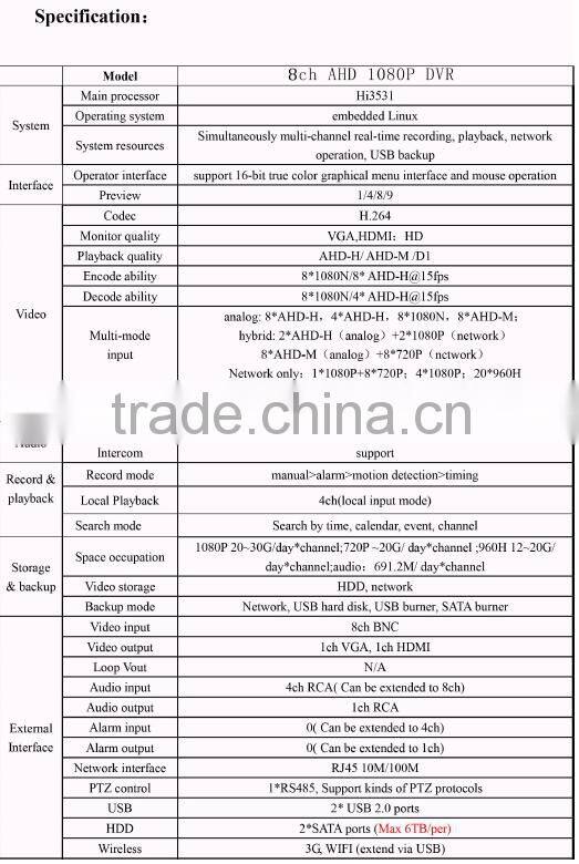 Digital Video Recorder AHD 1080P DVR 8CH