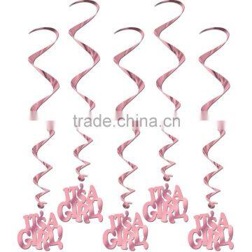 Its A Girl Pink Ceiling Hanging Swirl Decoration for Baby Shower Party