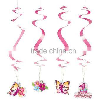 Baby Girl's 1st Birthday BUTTERFLY Hanging Swirls Fun Express First Party Decorations