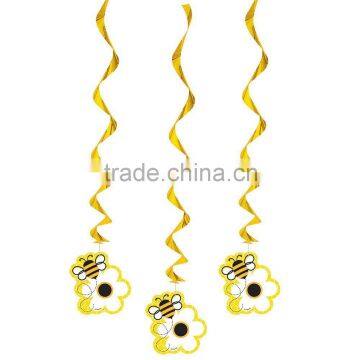 Neutral Busy Bees Birthday Party Foil Hanging Swirl Decoration for Kid's Birthday