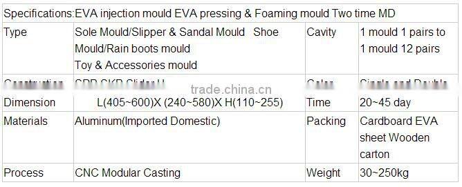 EVA sole, slipper, sandal, full shoe, rain-boot injection mould (Single and double color);