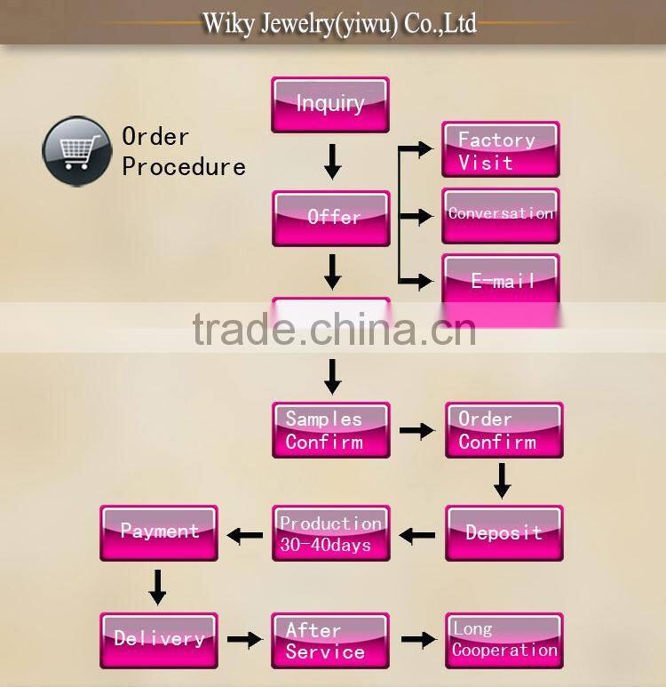 At present, we have integrated with design,produce, marketing and sales since 2010,OEM and ODM are absolutely available for us, besides, Wiky jewelry has a group of professional with years of experience in designing and manufacturing. With more than 100 employees and a manufacturing factory of 2500 square meters, furthermore, Wiky has a strong production capacity with the high quality items by our skilled workers per day. We can meet the short lead-time in delivering the high-end ordered products.