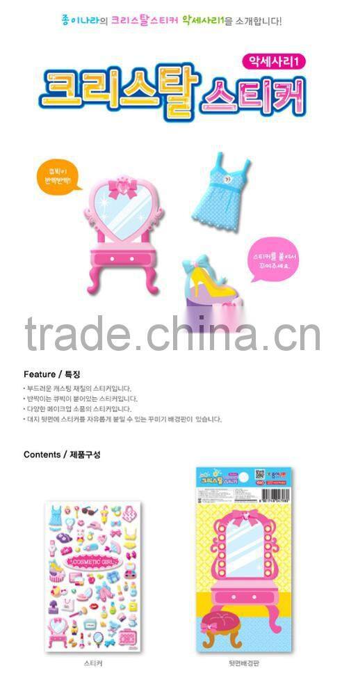 We have various materials and subjects of stickers such as epoxy sticker with convex 3D effect, casting sticker with embossing effect using all soft foamed fabric, and eco-friendly art paper sticker as well as sticker books for education.