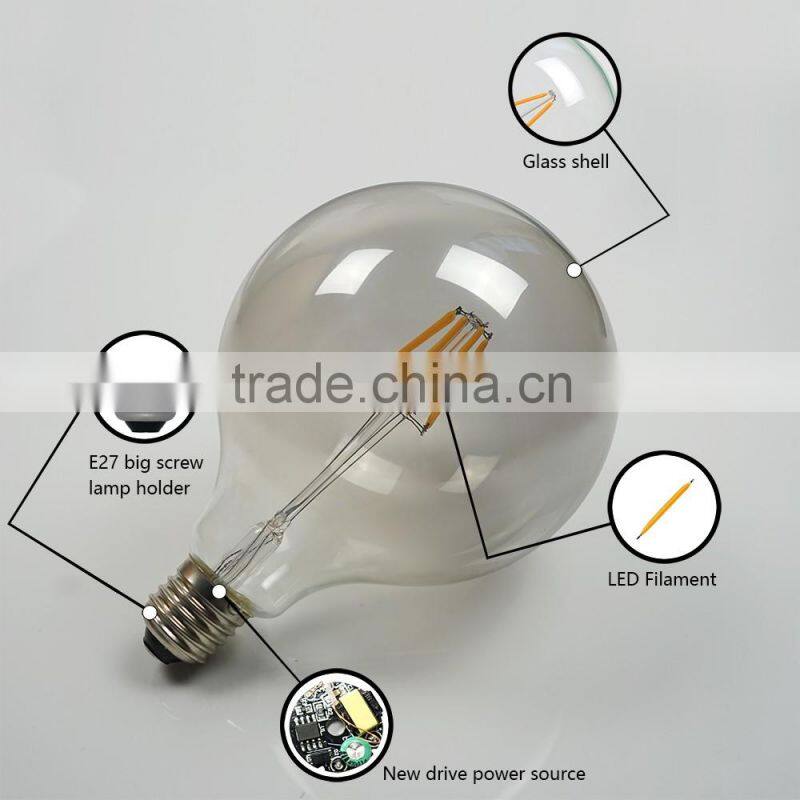 LED Lighting E27 360 Degree Dimmable Gray Cover G125 LED Bulb Filament
