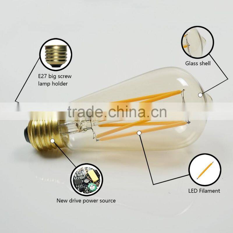 Gold Decorative ST64 LED Vintage Bulb /Vintage Dimmable Led Filament Edison Bulb Light