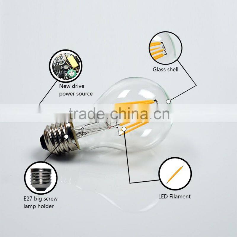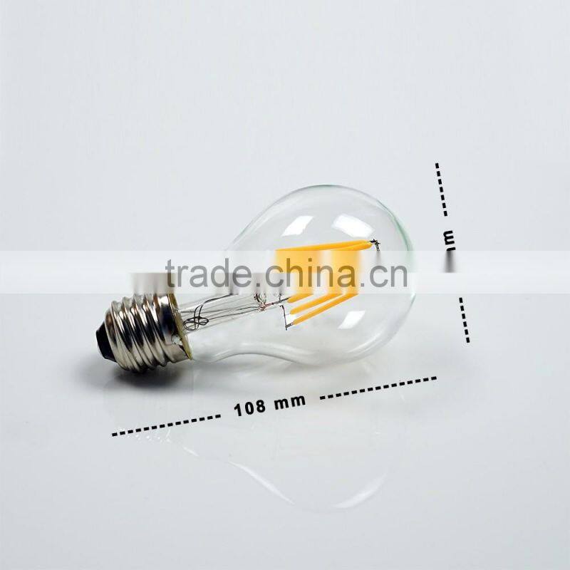 Led Bulb E27 A19 6W 600-700LM CE RoHS UL List Glass Led Filament Bulb Lighting