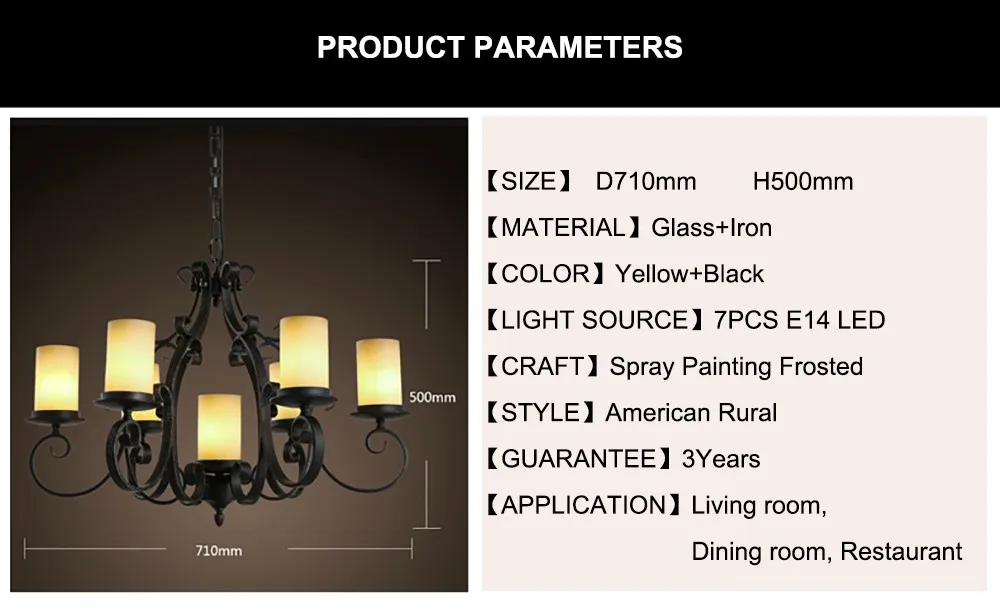American Rural Style beauty Lamp Glass Iron Lighting Pendant Light