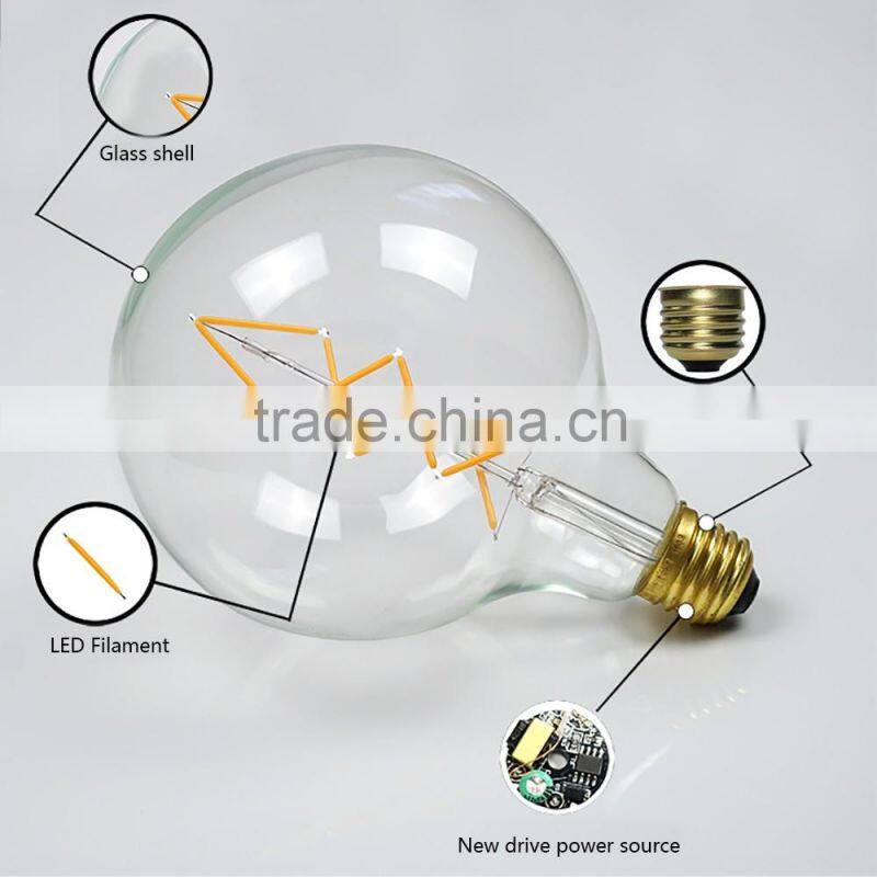 G125 Fancy Round led light 2-6W E12 E14 E26 E27 B22 dimmable vintage decorative led filament bulb