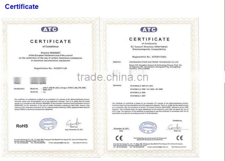 Zhongshan E-Tone Electronic Technology Co., Ltd is a comprehensive company which specializes in researching, developing and selling of electronic cigarettes. Founded in 2011.And we have an excellent team which including 12 research staff, 200 producing staff and 20 salespersons. The company have rewarded with the certificates of CE, ROSH and FCC. With the advance e cig processing equipment and mature technology, It’s subsidiary corporation--- We focus on customer demand and quality, and always provide customers with diversified, high-speeding products and services”.