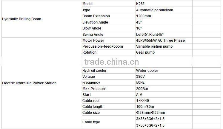 2.Robust universal drilling boom creates ideal face drilling coverage. Automatic parallelism and 3600 roll-over enable easy, fast and accurate positioning for face drilling, sideway drilling and bolt hole drilling.
