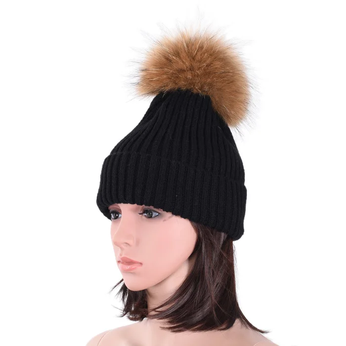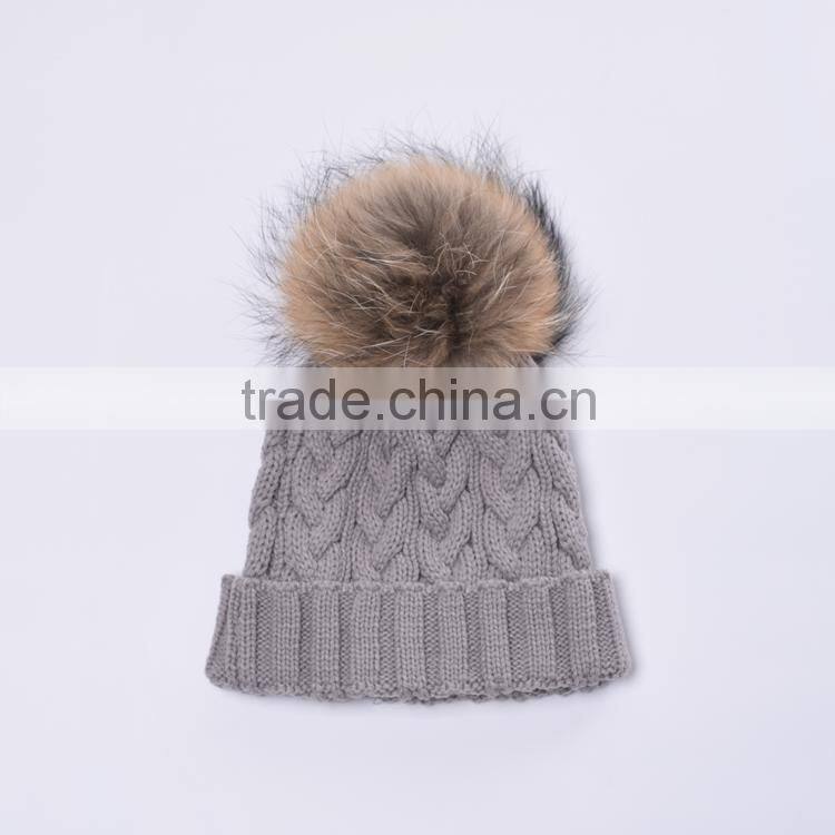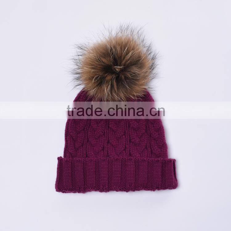 Winter Wool Knitted Beanies Scarf Fox Fur Pompom Knitted Hat WoolNegotiableMOQ: 1 Piece
