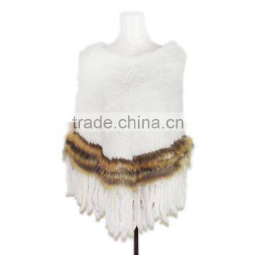 Rabbit Fur Poncho White Color Poncho Raccoon Fur Stripes Knitted Poncho KZ14051