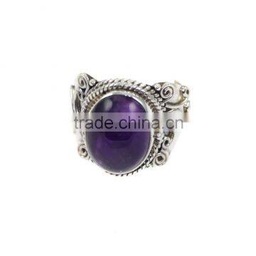 Amethyst Stone and Oval Silver Gemstone Ring