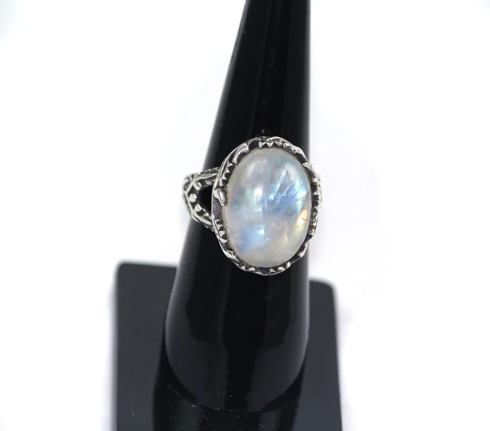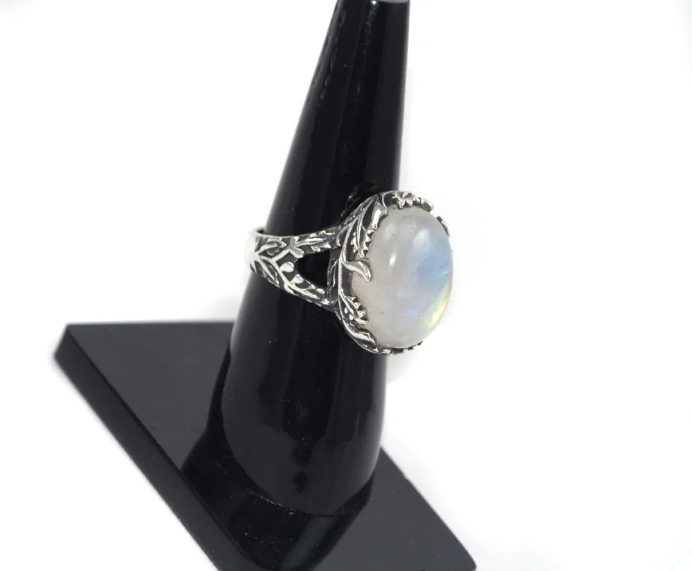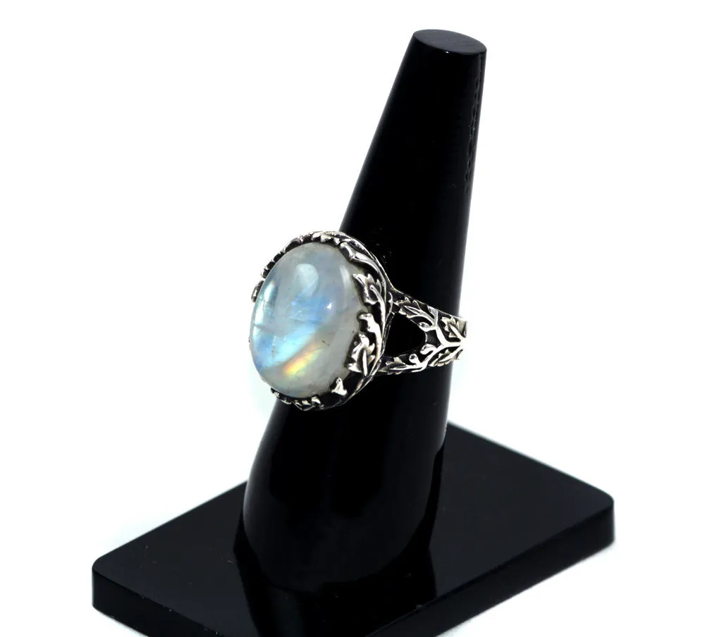 Moonstone Oval Cabochon 925 Sterling Silver Rings